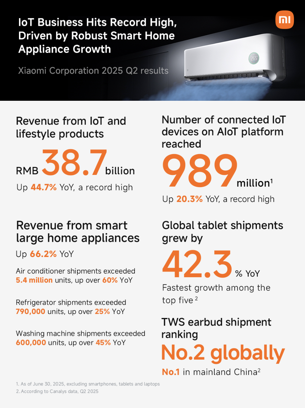 Ngoài ra, mảng máy tính bảng Xiaomi tăng trưởng 42,3%, đứng trong top 5 toàn cầu. Thiết bị đeo TWS giữ vị trí số 2 thế giới, trong khi Xiaomi AI Glasses gây sốt với doanh số vượt xa kỳ vọng ngay khi mở bán.